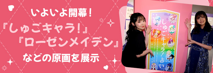 最初に広がるのは『しゅごキャラ!』の世界。海外でも高い人気を集めるしゅごキャラ!その初期の原画から最新のジュエルジョーカーの原画も展示し、さらに『しゅごキャラ!』のグッズ他アイテムを使って制作したポップなフォトスポットの設置をする予定です。